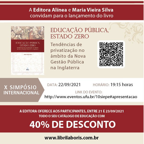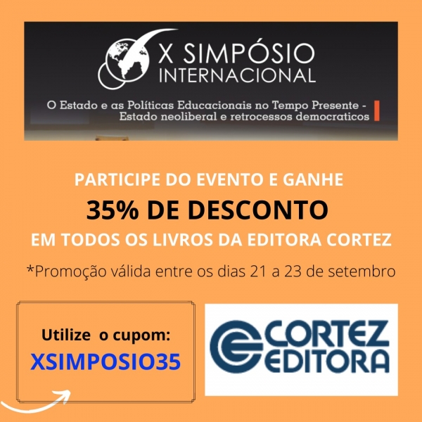Prezados/as, Atendendo pedidos de pesquisadores/as, a comissão organizadora do X Simpósio Internacional "O Estado e as políticas educacionais no tempo presente" deliberou pela prorrogação de prazos para submissão de trabalhos: 30 de agosto de 2021. Esperamos vocês!