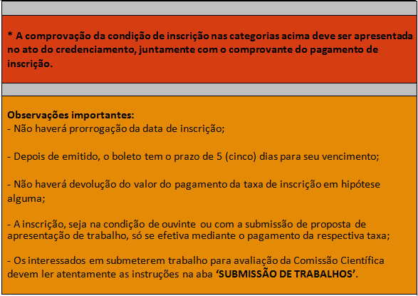 - Em caso de trabalho em co-autoria, os dois co-autores devem se inscrever no evento;