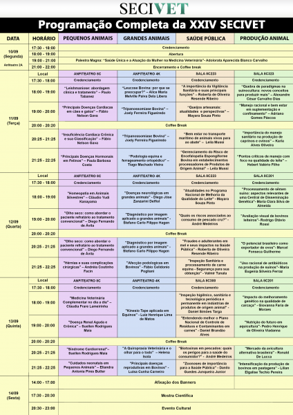 XXIV Semana Científica de Medicina Veterinária da UFU e X Mostra de Pós-Graduação em Ciências Veterinárias
