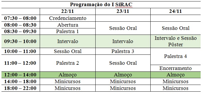 A atividade será desenvolvida por meio da apresentação de Sessões de Comunicações Orais e Pôsteres, pautadas pelos seguintes eixos temáticos: