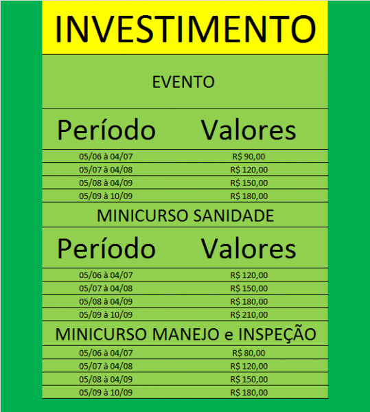 *A inscrição do evento da direito a submissão de 3 trabalhos por autor. **As vagas são limitadas. ***Só serão aceitas vagas no local em caso de disponibilidade. **** Aos que não forem realizar nenhum dos minicursos deverá, necessariamente, selecionar a opção 'sem minicurso' dentre as opções