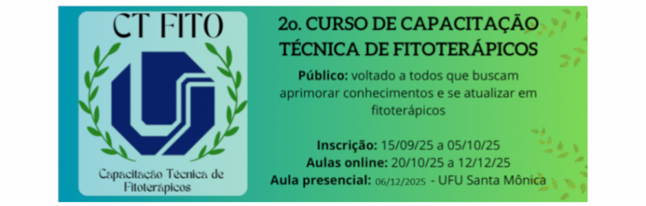 O Instituto de Química da Universidade Federal de Uberlândia (IQ/UFU) está promovendo o “2o. Curso de Capacitação Técnica em Fitoterápicos”, voltado para profissionais que atuam em farmácias de manipulação. O curso oferece 30 vagas e emitirá certificados aos participantes.
