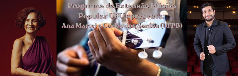 Nos dias 11 e 12 de maio de 2026, o programa de extensão “Música Popular UFU” recebe os convidados Carlos dos Santos e Ana Martel, da Universidade Federal da Paraíba (UFPB), para uma série de atividades voltadas aos/às estudantes do Curso de Graduação em Música da instituição, porém também abertas para a comunidade externa.