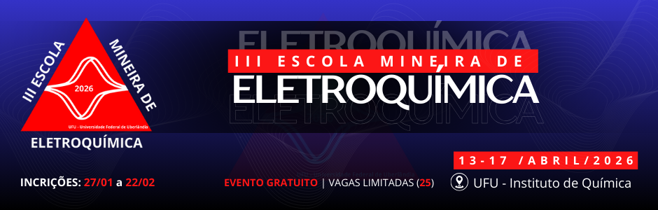 A "3a Escola Mineira de Eletroquímica " é um evento voltado para estudantes, profissionais da indústria e usuários de técnicas eletroquímicas. Evento 100% presencial que conta com minicursos (aulas teóricas e práticas), palestras de cientistas renomados. Teremos também o II Workshop Mineiro de Eletroquímica (ME) em que os participantes poderão apresentar seus trabalhos. O evento oferece oportunidade única para aprofundar conhecimentos em eletroquímica e compartilhar os dados de pesquisas de projetos na área. Além do conteúdo teórico e prático, os participantes poderão interagir com profissionais da área, fortalecendo suas redes de contatos e ganhando uma visão prática sobre as aplicações dessa importante área da química. Fundamental para o crescimento acadêmico e profissional dos estudantes, o evento promete ser um marco na formação dos participantes.