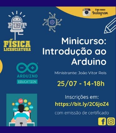 O Arduino é um dispositivo de código aberto de custo acessível e simples de programar. Ele pode ser utilizado por estudantes, pesquisadores, professores e interessados em robótica. Este minicurso, organizado pelo PET Física Licenciatura, visa apresentar a plataforma Arduino para os licenciandos, estudantes e professores, para que possam complementar suas aulas e disseminar esta tecnologia.