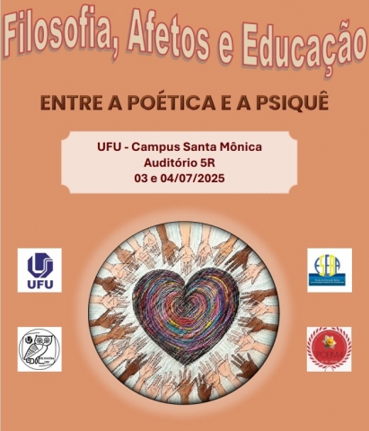 O seminário “Filosofia, afetos e educação: entre a poética e a psiquê" acontecerá hoje e amanhã, nos dias 3 e 4 de julho, no auditório 5R-AB, localizado no Campus Santa Mônica da Universidade Federal de Uberlândia (UFU). A participação é gratuita e os participantes terão direito a certificados emitidos pelo Siex/UFU.