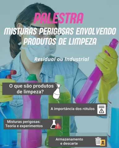 O Instituto de Química da Universidade Federal de Uberlândia (IQUFU) realiza nesta terça-feira, dia 16 de setembro, a palestra "Misturas perigosas envolvendo produtos de limpeza", às 12h no auditório A do bloco 5O no Campus Santa Mônica.